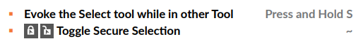 Press and Hold S = 다른 도구에 있는 동안 선택 도구를 호출합니다