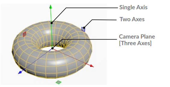 단일 축, 두 축으로 작업하거나 중앙을 사용하여 카메라 평면을 따라 이동할 수 있습니다.