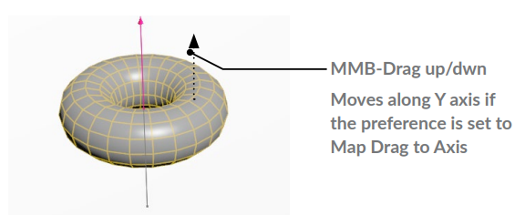 핸들을 직접 클릭하고 싶지 않은 경우 열린 공간에서 MMB 을 드래그와 결합하여 건설 평면을 따라 이동할 수 있습니다.