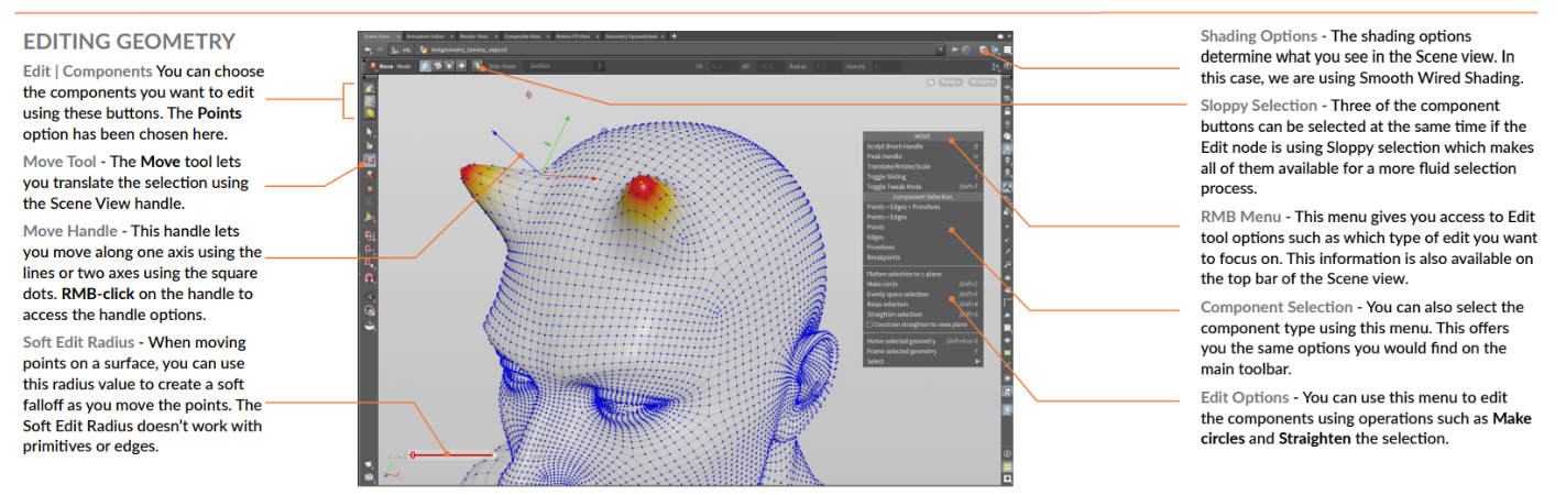 지오메트리 구성요소를 이동하려고 하면 Edit node가 자동으로 하위 node에 배치되어 변환을 받아들입니다.