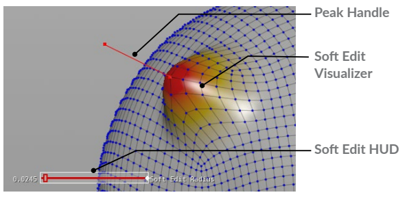 지표면에서 점을 이동할 때 이 반지름 값을 사용하여 점을 이동할 때 부드러운 탈락을 만들 수 있습니다. Soft Edit Radius 은 프리미티브 또는 에지에서 작동하지 않습니다.